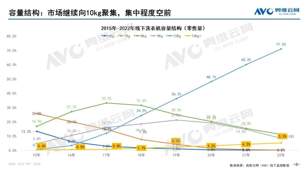 回顧2022年,在規(guī)模及經營壓力下,企業(yè)從價格策略,渠道轉型,以及技術迭代上都做出了諸多探索。就價格策略而言,線上洗烘一體機持續(xù)降價,一度使得低端洗烘一體機價格逼近成本邊緣。就渠道策略而言,線上流量紅利耗盡,線下KA渠道萎縮的大背景下,企業(yè)端對于下沉及拼抖快市場的持續(xù)投入,對于商超及區(qū)域連鎖的重視程度增大,就產品策略而言,內資品牌集中上新分區(qū)洗衣機,提升產品結構。外資品牌加速布局超大容量,追趕內資品牌的步伐。