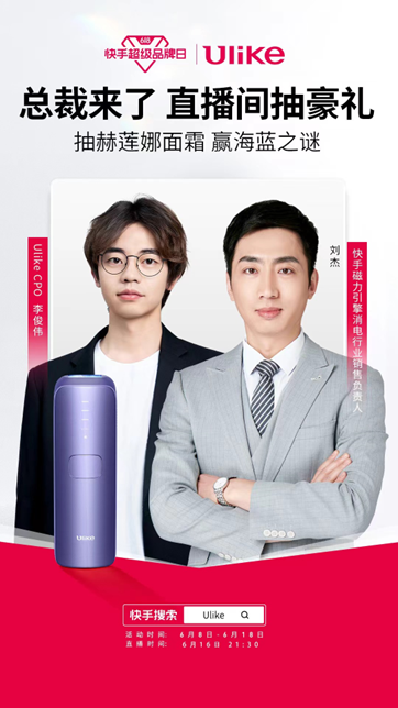 值得一提的是,6月16日晚9:30,Ulike還將邀請(qǐng)Ulike和快手“雙總裁”走進(jìn)快手直播間,給用戶帶來更多優(yōu)惠價(jià)格和福利。