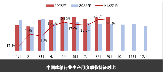 9月冰箱行業(yè)延續(xù)了上月增長趨勢,產(chǎn)銷量再創(chuàng)年度單月新高,產(chǎn)量同比增幅均達兩位數(shù)增長。從生產(chǎn)端看,9月冰箱產(chǎn)量同比增長19.2%,較上月環(huán)比小幅增長0.2%,銷售市場回暖帶動產(chǎn)品生產(chǎn)需求提升,并且近期鋼鐵等材料供應(yīng)穩(wěn)定,原材料采購成本也在降低。從銷售端看,9月冰箱銷售同比增幅較上月又有提升。分市場來看,9月出口市場增長迅速,同比增速高達57.2%,今年以來國際運費大幅度下滑,人民幣匯率的變化都在一定程度上減輕了海外市場的競爭壓力,有利于出口市場增長。從出口區(qū)域來看,歐美地區(qū)上年度同期基數(shù)較低,疊加補庫存需求,出口同比增長明顯,同時新興市場本月也實現(xiàn)較大增長。不過部分地區(qū)的政治局勢不穩(wěn)定以及地緣政治等因素,可能會對相關(guān)地區(qū)的出口貿(mào)易造成一定影響。相比于出口市場的活躍,9月內(nèi)銷市場稍顯遜色,但2023 年以來地產(chǎn)放松政策加碼加速出臺,尤其8月末至9月期間,各大城市”認房不認貸“、”首付比例下調(diào)“等重大結(jié)構(gòu)性政策出臺,家電配置價值凸顯,嵌入式冰箱經(jīng)過近幾年的推廣,目前也有明顯增量,9月冰箱內(nèi)銷量延續(xù)增長態(tài)勢,同比增長5.6%。