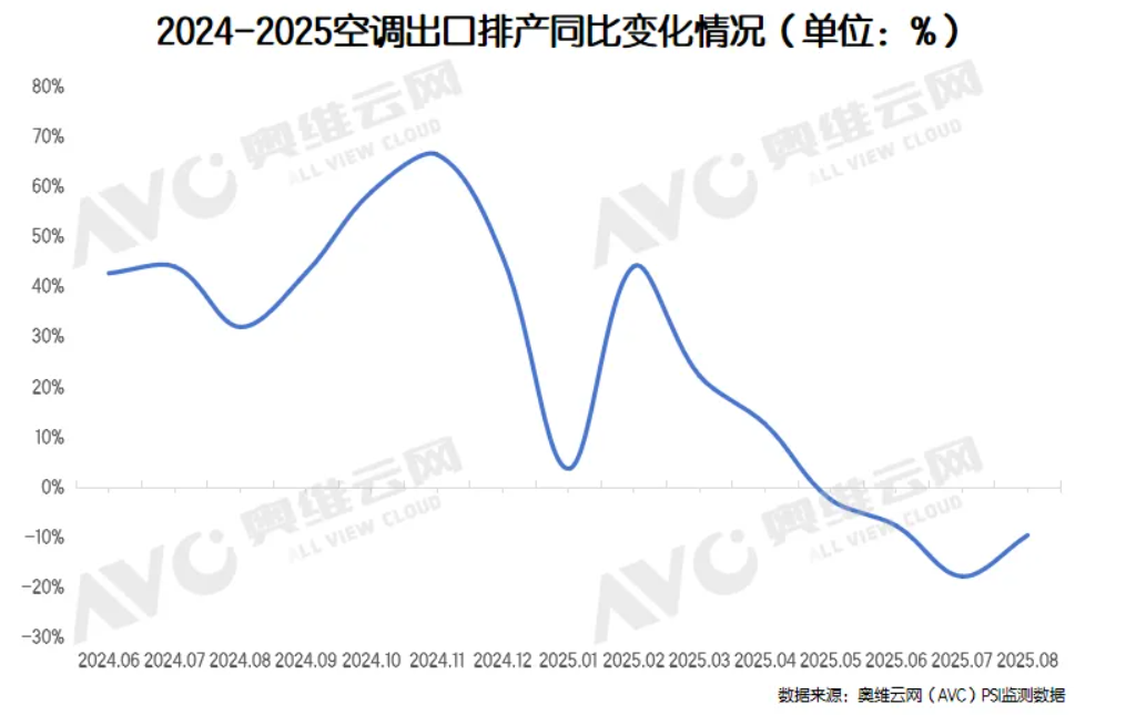 8月空調(diào)出口市場延續(xù)調(diào)整態(tài)勢,海外空調(diào)排產(chǎn)增速同比下滑9.5%