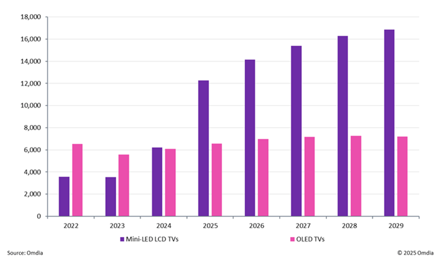 在顯示技術(shù)的演進(jìn)歷程中,Mini LED 已成為行業(yè)公認(rèn)的下一代升級(jí)方向。從TCL、海信、創(chuàng)維到三星,主流電視企業(yè)紛紛加碼布局,無論是產(chǎn)品陣營(yíng)的規(guī)模還是市場(chǎng)份額,Mini LED 都已實(shí)現(xiàn)對(duì)OLED的超越。