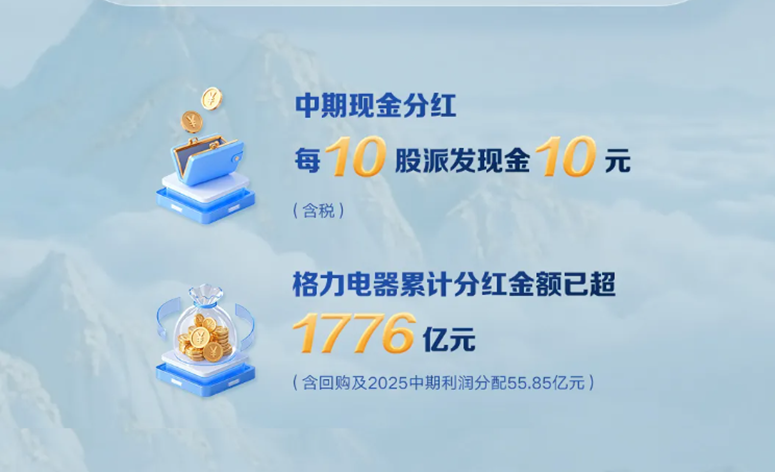 值得關(guān)注的是,格力電器始終重視股東回報(bào),近期發(fā)布了2025年中期利潤(rùn)分配預(yù)案,擬每10股派發(fā)現(xiàn)金紅利10元,共計(jì)派發(fā)現(xiàn)金紅利55.85億元。自上市以來(lái),格力電器累計(jì)分紅金額已超過1776億元,體現(xiàn)了公司對(duì)股東回報(bào)的高度重視。