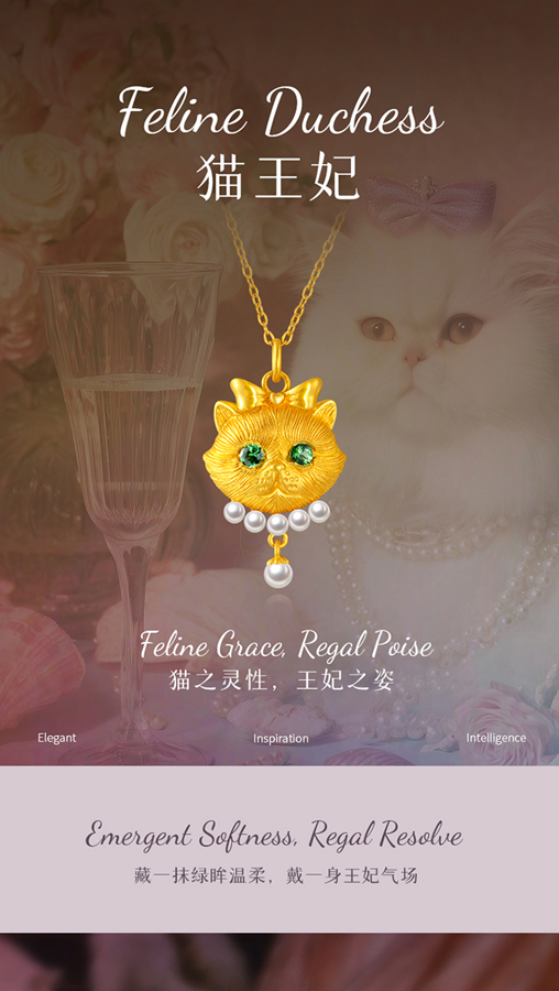 以奢寵系列為例,紫金黃金電商總監(jiān)張鵬介紹稱,近年來“它經(jīng)濟”持續(xù)繁榮,養(yǎng)寵人群增長迅速且消費意愿較強,因此品牌借勢開發(fā)“貓王妃”、“奢寵”等寵物系列金飾,將黃金產(chǎn)品轉(zhuǎn)化為養(yǎng)寵人與寵物之間的情感鏈接,激發(fā)情緒共鳴,配合磁力金牛人群定向投放,為品牌觸達更加多元的人群圈層。
