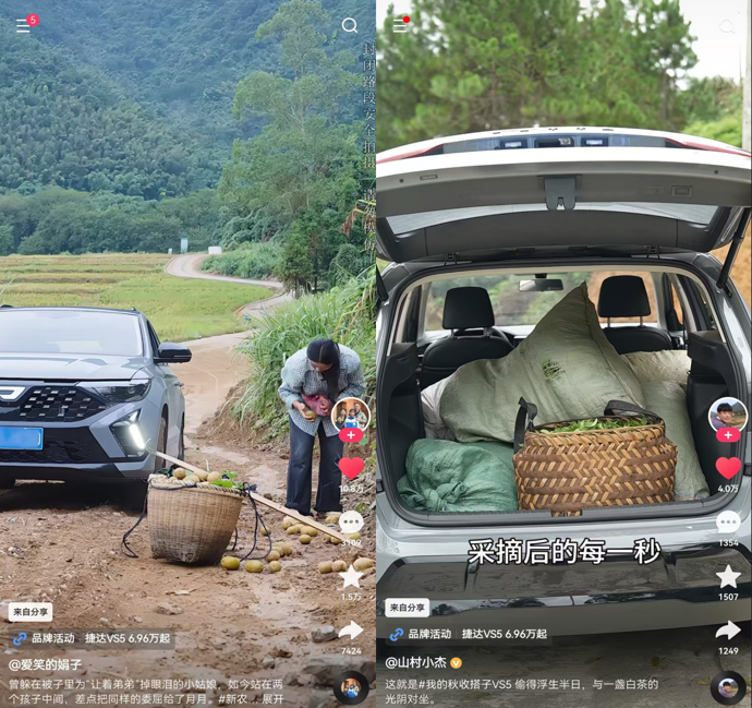 為給女兒制作獼猴桃醬,@愛笑的娟子 挑著滿滿兩筐剛摘的果子,卻不慎摔倒在濕滑泥濘的小徑;白茶豐收時(shí)節(jié),@山村小杰 需要將一筐筐茶葉從云霧繚繞的山間,經(jīng)由蜿蜒曲折的山路穩(wěn)妥運(yùn)抵山下晾曬房……沒有生硬的參數(shù)羅列,VS5的強(qiáng)動(dòng)力、大空間與高性價(jià)比等核心優(yōu)勢(shì),就在這些真實(shí)棘手的瞬間,和充滿煙火氣的生活場(chǎng)景中,得到了最自然而有力的展示。