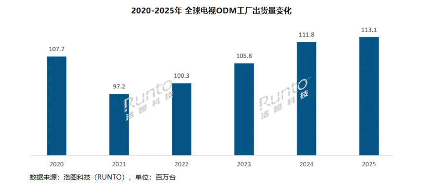 全球電視代工市場在2025年繼續(xù)保持增長勢頭。根據(jù)洛圖科技最新報告,全年出貨總量達到1.13億臺,同比增長1.2%,這也是自2022年以來連續(xù)第四年實現(xiàn)上漲。市場呈現(xiàn)穩(wěn)健態(tài)勢,上半年增長1.6%,下半年略緩為0.9%,整體波動平緩。