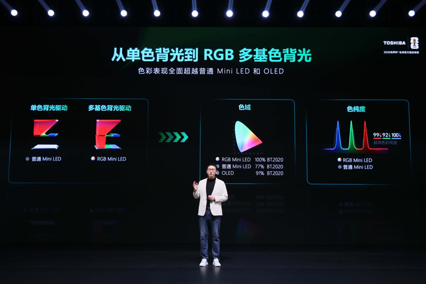 本次發(fā)布的核心技術(shù)——原色RGB Mini LED,是東芝在顯示領(lǐng)域的又一次跨越式升級(jí)。不同于傳統(tǒng)單色背光,東芝電視直接從光源底層出發(fā),采用紅、綠、藍(lán)三色獨(dú)立控制光源,實(shí)現(xiàn)接近100%的色純度與最高110% BT.2020的超廣色域,成為行業(yè)首個(gè)獲得Pantone廣色域與高立體色域雙項(xiàng)認(rèn)證的顯示產(chǎn)品。