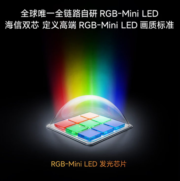 海信的角色不僅是破局者,更是定義者。推動這項(xiàng)技術(shù)走向成熟,需要攻克RGB芯片在效率、壽命與成本上的產(chǎn)業(yè)化難題,也必須構(gòu)建與之匹配的運(yùn)算核心。于是,全球首款RGB光色同控AI畫質(zhì)芯片H7與自研的RGB-Mini LED發(fā)光芯片,共同構(gòu)成了這項(xiàng)技術(shù)的雙核心驅(qū)動。這種從底層芯片開始的垂直整合,構(gòu)筑了堅(jiān)實(shí)的技術(shù)壁壘。