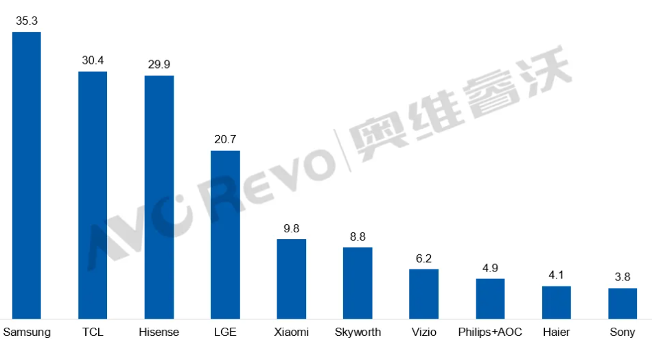 近年來,隨著中國TV品牌的崛起,外資品牌市場地位受到?jīng)_擊,盈利下降,品牌廠重組、收購不斷:創(chuàng)維收購Funai北美電視業(yè)務(wù),并將獲得松下日本以外區(qū)域品牌授權(quán),TCL將控股Sony。2026-2027年,TOP5品牌排位預(yù)計將有異動,創(chuàng)維攜手松下,2026年有望躋身TOP5;2025年TCL憑借垂直產(chǎn)業(yè)鏈一體化優(yōu)勢、多品牌策略,出貨規(guī)模躍居第二,2027年TCL聯(lián)合SONY有望全球出貨量規(guī)模登頂。