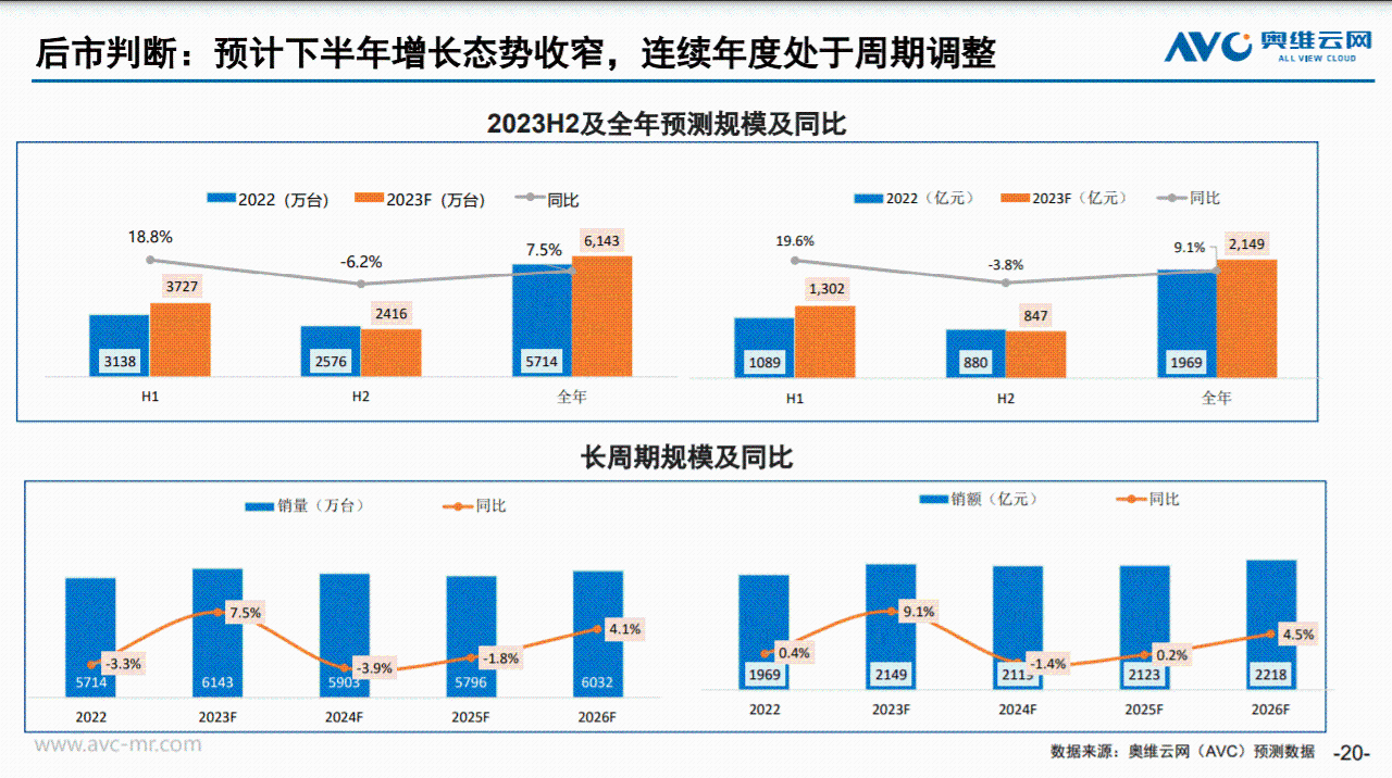 按照奧維云網(wǎng)的判斷,2024年空調(diào)市場(chǎng)將同比下滑1.4%;2025年、2026年兩年有所回暖,市場(chǎng)規(guī)模為2123億元、2218億元,同比分別上漲0.2%、4.5%。波動(dòng)前行,成為未來(lái)3年空調(diào)市場(chǎng)的基本面。