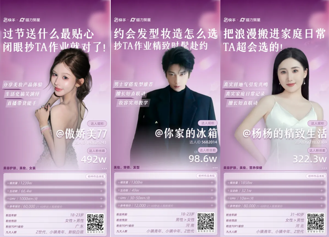 春風(fēng)啟序,暖意漸濃,3月上新季如期而至,美妝護膚、服飾穿搭、生活好物、情感祝福等相關(guān)內(nèi)容搜索量迎來爆發(fā)式增長,成為品牌營銷的黃金窗口期。為助力廣告主精準(zhǔn)把握節(jié)點紅利,快手磁力聚星重磅推出3月上新季專屬達人IP「曬出你的女神」,圍繞家庭、閨蜜、職場女性三大核心內(nèi)容場景,聯(lián)動優(yōu)質(zhì)達人矩陣,搭配全鏈路熱點沖榜服務(wù),為廣告主打造兼具流量熱度與轉(zhuǎn)化實效的營銷解決方案,贏得市場先機。