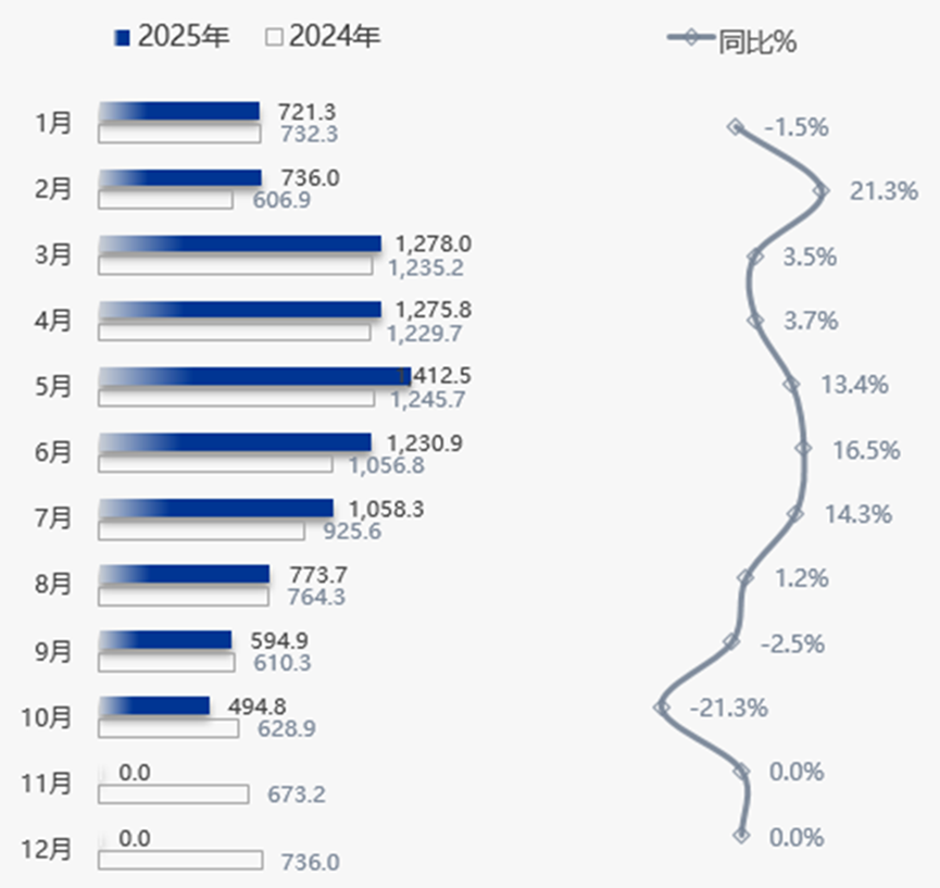 圖:2024-2025年中國(guó)家用空調(diào)行業(yè)內(nèi)銷(xiāo)月度推移(按財(cái)年,產(chǎn)業(yè)在線)