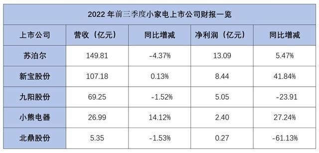 有小家電代工大王之稱的新寶股份,前三季度也交出了不錯的業(yè)績答卷。財報顯示,前三季度實現(xiàn)營收107.18億元,同比增長0.13%;歸母凈利潤8.44億元,同比增長41.84%。雖然營收增幅較小,但新寶的利潤增幅很高,同樣非常不易。