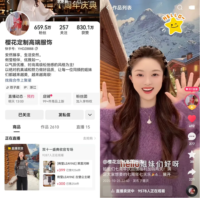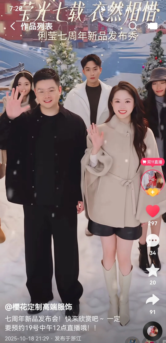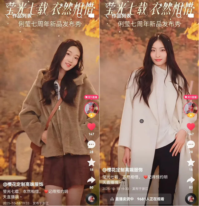 靠自有供應(yīng)鏈保障品質(zhì),以內(nèi)容場迭代搶占用戶心智,“櫻花定制高端服飾”主播安然也正完成從源頭工廠帶貨主播到“品牌主理人”的關(guān)鍵跨越。