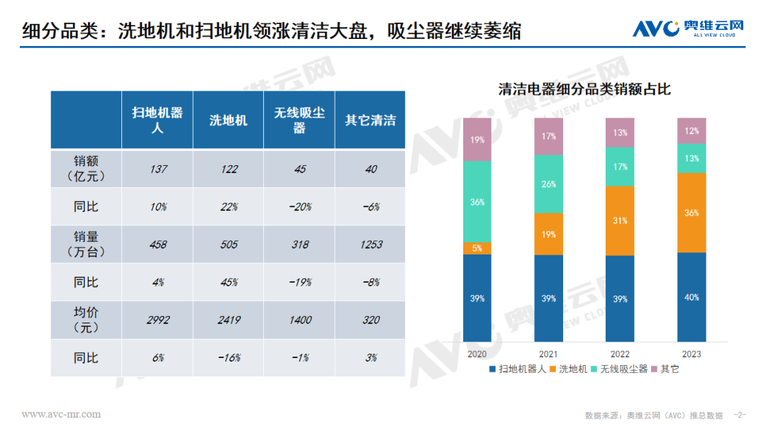 [丁科技網(wǎng)觀察]在過去的一年,中國清潔電器市場(chǎng)“天氣以晴朗為主,時(shí)有微雨,偶多云”,奧維云網(wǎng)(AVC)推總數(shù)據(jù)顯示,2023年中國清潔電器零售額344億元,同比增長(zhǎng)6.8%,零售量2534萬臺(tái),同比下滑0.5%。
