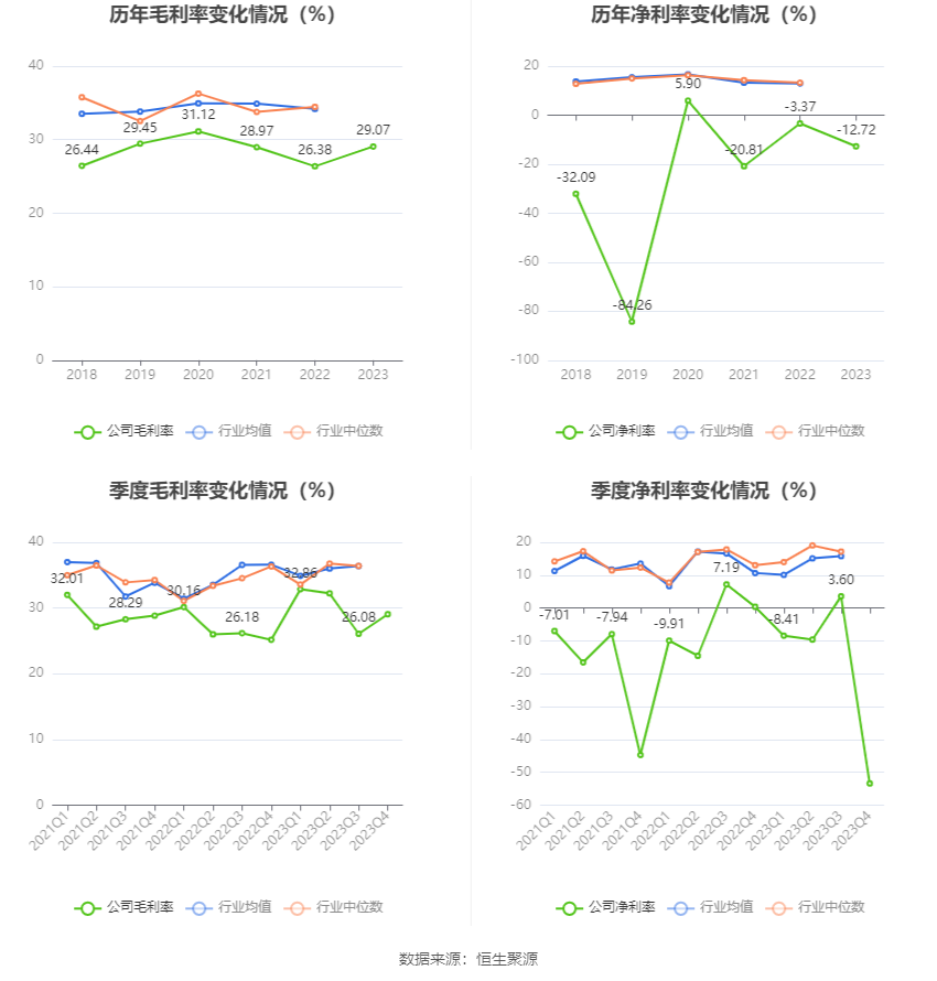 “憂(yōu)”的方面來(lái)看,凈利潤(rùn)虧損在擴(kuò)大。2023年,公司歸母凈利潤(rùn)虧損5.29億元,上年同期虧損1.01億元;扣非凈利潤(rùn)虧損3.62億元,上年同期虧損4.66億元。