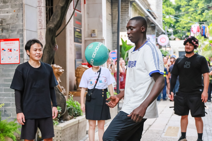 無語哥還體驗了DIY廣東糖水、品嘗了廣東涼茶,在永慶坊的老街上興致滿滿的和花式足球運動員玩了一會兒街頭足球。據(jù)了解“無語哥”愛好足球運動,幾個顛球動作顯示出了他的足球基本功以及對于這項運動的熱愛??焓种辈ラg粉絲評論“這波炫技滿分,無語哥街頭足球好厲害”。