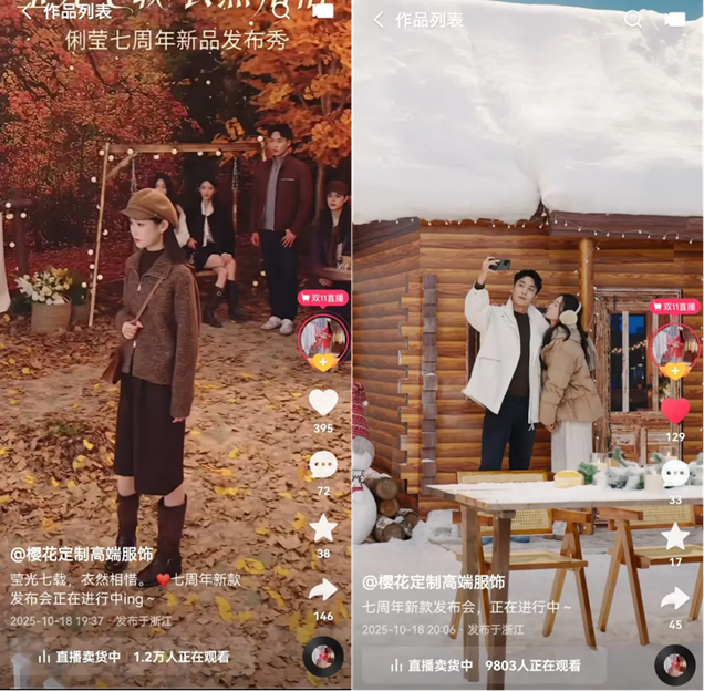 于是,團(tuán)隊(duì)在直播間還原了“秋日公園”和“冰雪秘境”兩個(gè)最具代入感的布景,讓用戶在觀看時(shí)不僅能欣賞服裝,更能瞬間聯(lián)想到自己的穿著場(chǎng)景,激發(fā)購(gòu)買欲望。