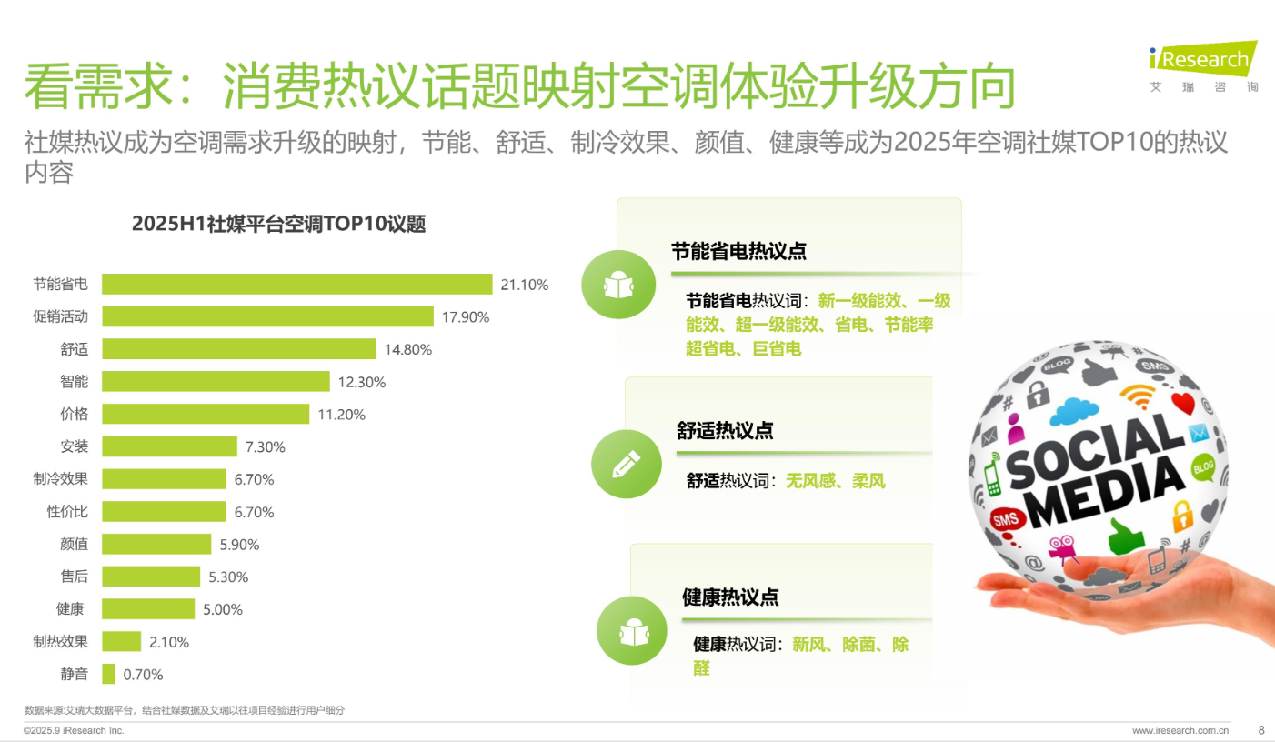 據(jù)艾瑞咨詢《2025空調(diào)行業(yè)趨勢(shì)與消費(fèi)需求白皮書》,政策推動(dòng)的低碳轉(zhuǎn)型與消費(fèi)端品質(zhì)升級(jí)形成共振,推動(dòng)空調(diào)從“單一溫度調(diào)節(jié)器”向“空氣品質(zhì)管理中樞”演進(jìn)。健康舒適、低碳節(jié)能、AI智能已成為定義“好空調(diào)”的三大黃金標(biāo)準(zhǔn)。