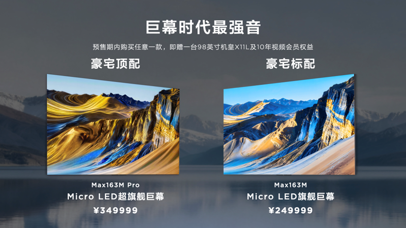 163吋Micro LED巨幕“雙曜”一亮相,“意外”的感覺就來(lái)了。不是因?yàn)樗?,也不是因?yàn)樗昧?000多萬(wàn)顆無(wú)機(jī)自發(fā)光芯片,而是因?yàn)樗尤徽娴哪脕?lái)賣了,而且Max163的價(jià)格定在249999元。