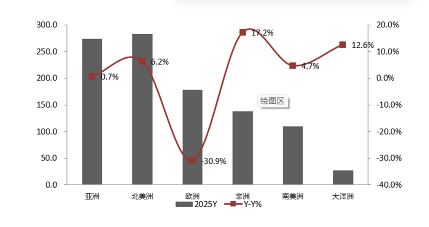 圖:中國(guó)大陸液晶電視10月份出口細(xì)分區(qū)域概況(單位:萬(wàn),產(chǎn)業(yè)在線)