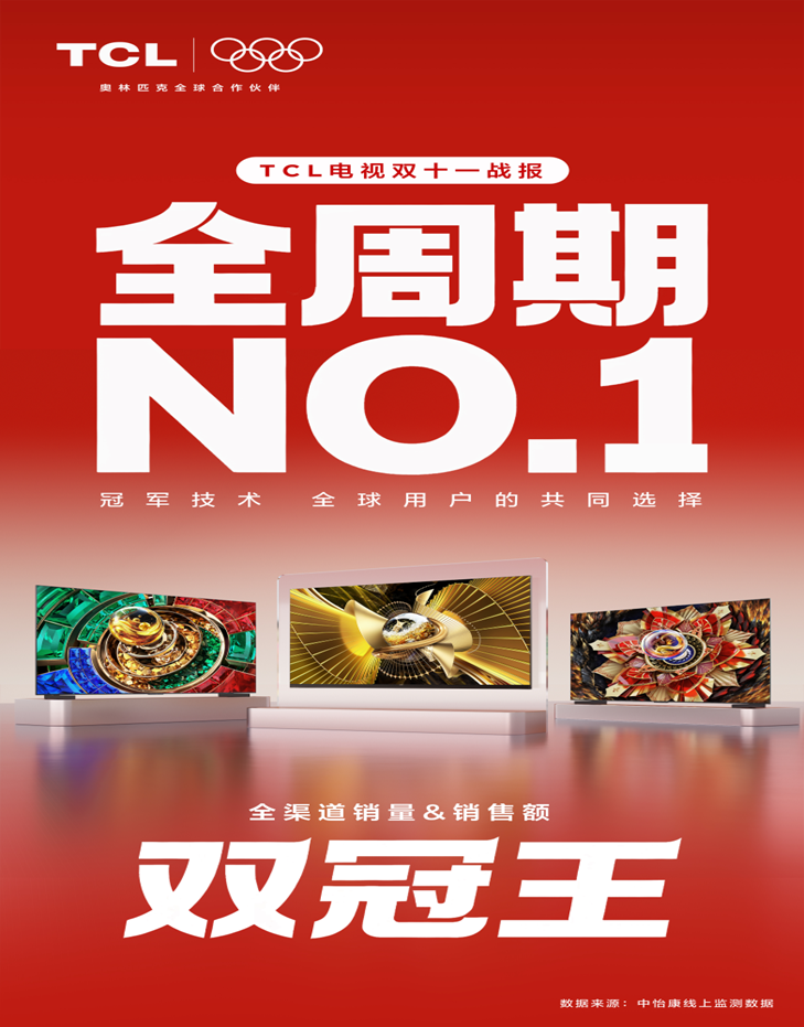 值得一提的是,除了行業(yè)的認可,市場也給出了自己的答案——在剛剛過去的雙十一全周期,TCL成功斬獲銷量&銷售額雙冠王,力壓全場。