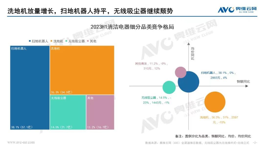 根據(jù)奧維云網(wǎng)數(shù)據(jù),洗地機(jī),銷(xiāo)額同比增長(zhǎng)31%,銷(xiāo)量同比增長(zhǎng)53%,是清潔電器中的“增長(zhǎng)大贏家”;掃地機(jī),一路上演由負(fù)轉(zhuǎn)正的戲份,甚至出現(xiàn)了量額的兩位數(shù)增長(zhǎng);無(wú)線(xiàn)吸塵器,依然沒(méi)能走出下行區(qū)間,出現(xiàn)了量額的兩位數(shù)下滑。