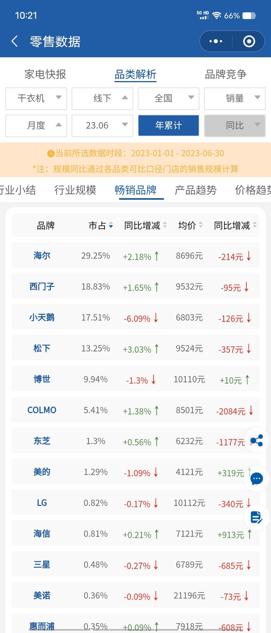 丁科技網(wǎng)注意到,干衣機線上市場國內(nèi)品牌占主導地位,線下市場則是外資品牌占主導地位。從均價來看,線上國內(nèi)品牌的均價大體在1000-4000元,而線下外資品牌的均價則在8000-11000元,差距非常大??梢钥闯?,線上市場國內(nèi)品牌以價換量占據(jù)優(yōu)勢地位,而線下市場外資品牌則通過品牌拉力、體驗優(yōu)勢,獲得了更大的競爭優(yōu)勢。