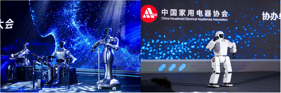 浙江大學(xué)機(jī)器人研究院孵化的“和璇”人形機(jī)器人樂隊(duì)在現(xiàn)場驚艷的樂隊(duì)協(xié)奏表演。TCL和方太以及浙江人形機(jī)器人創(chuàng)新中心則分別展示了家庭中不同形態(tài)的機(jī)器人該做的事情。智身的四足機(jī)器人“鋼镚”也帶來了令人忍俊不禁的萌萌的舞蹈秀。
