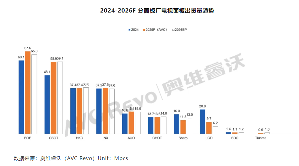 當(dāng)前,電視行業(yè)正處于深度調(diào)整周期,2025-2026年的電視面板行業(yè),也在調(diào)整中謀求增長(zhǎng)破局。奧維睿沃?jǐn)?shù)據(jù)顯示,2026年電視面板整體需求預(yù)計(jì)比2025年小幅下降2%,弱需求下面板廠商將實(shí)施動(dòng)態(tài)控產(chǎn),出貨預(yù)期也將變得更加謹(jǐn)慎。