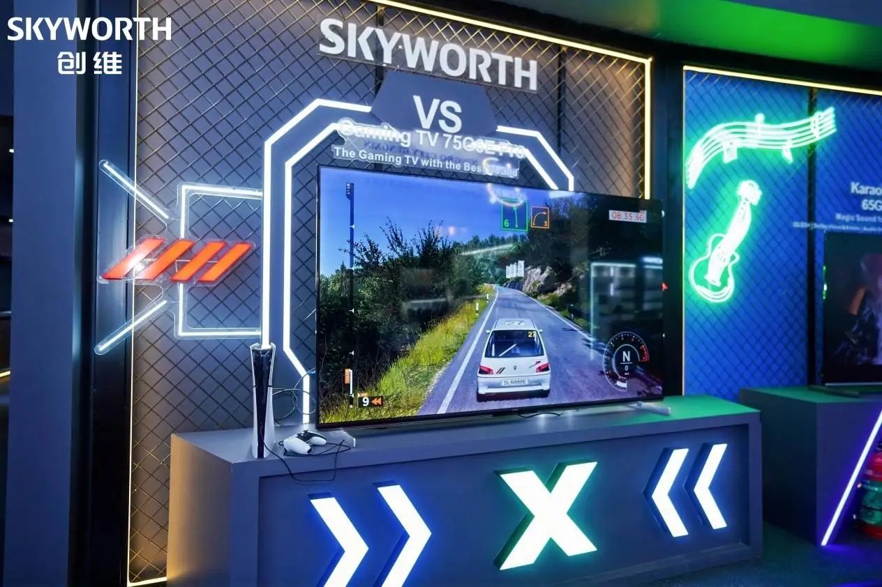 在Mini LED展區(qū),75G6E Pro連接了最新款PS5主機(jī),現(xiàn)場演示賽車游戲的高幀率與低延遲效果,為觀眾帶來近乎電競級的視覺體驗(yàn);75G6E則通過專人演示K歌功能,搭配創(chuàng)維聲學(xué)系統(tǒng),為家庭娛樂與社交場景提供了即開即用的完整解決方案,成為現(xiàn)場K歌打卡地。