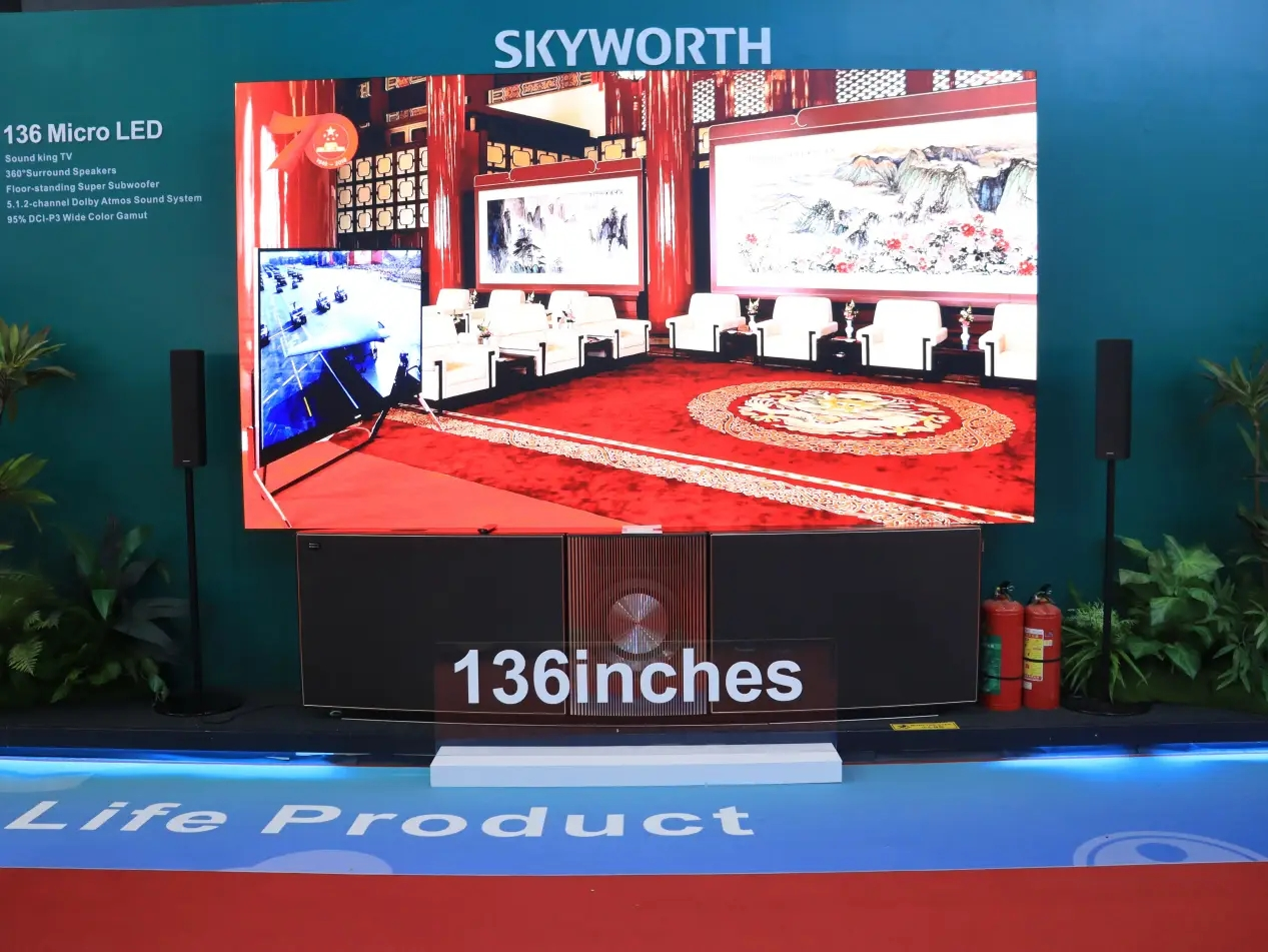 面向商用領(lǐng)域,創(chuàng)維首臺AI智能體多場景LED超級電視——“創(chuàng)維影音王座”136吋Micro LED也重磅亮相,能夠覆蓋會議、教育、文旅等多元場景。