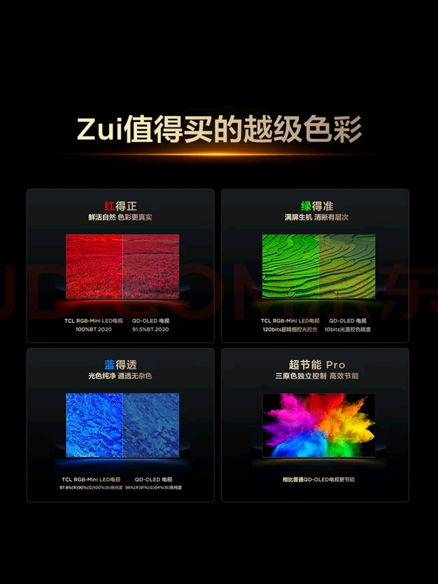 二是保持了極高的色域水平。KSF熒光粉技術(shù)成熟,能夠激發(fā)出色純度極高的紅光。配合原本的藍(lán)、綠芯片,TCL Q9M依然實(shí)現(xiàn)了100% BT.2020的超高色域覆蓋,色域值達(dá)到行業(yè)頂尖水準(zhǔn)。這意味著,改進(jìn)方案并未以犧牲色彩表現(xiàn)力為代價,依然能呈現(xiàn)極其豐富、鮮艷、準(zhǔn)確的色彩。