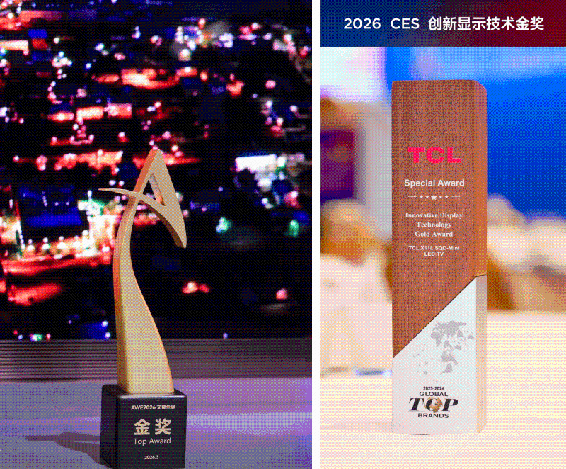 這一技術(shù)實(shí)力也得到了專業(yè)領(lǐng)域的高度認(rèn)可:中國視像協(xié)會認(rèn)證SQD-Mini LED技術(shù)引領(lǐng)顯示行業(yè)突破,頒發(fā)科技創(chuàng)新獎(jiǎng);CES 2026上,SQD-Mini LED斬獲創(chuàng)新顯示技術(shù)金獎(jiǎng),被眾多科技媒體評選為“BEST OF 2026CES”;而AWE 2026.搭載SQD-Mini LED技術(shù)的TCL X11L電視更獲得了艾普蘭獎(jiǎng)金獎(jiǎng),受到海內(nèi)外媒體的高度評價(jià)。