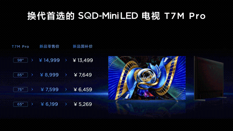 如果說TCL Q9M Pro是讓更多人體驗(yàn)到SQD畫質(zhì)的輕旗艦,那么TCL T7M Pro則是讓SQD-Mini LED技術(shù)真正走進(jìn)千家萬戶的普及先鋒。當(dāng)同價(jià)位產(chǎn)品還在使用普通Mini LED技術(shù),T7M Pro已經(jīng)進(jìn)化到跨代的SQD-Mini LED技術(shù),形成了降維打擊,成為消費(fèi)者換代首選。